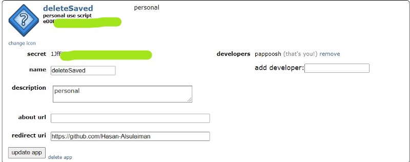 make a note of the “personal use script” and “secret”, you will use these to authenticate you bot.